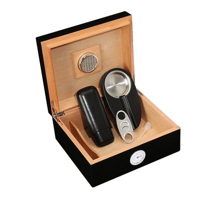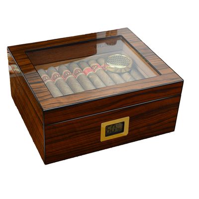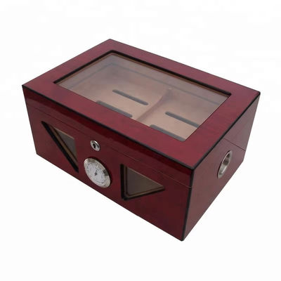 | Custom sliver hinges hygrometer cigar humidor box with glass window |