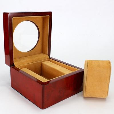 Premium glossy watch gift box featuring a round velvet pillow, crafted from high-quality wood for luxurious watch storage and display.