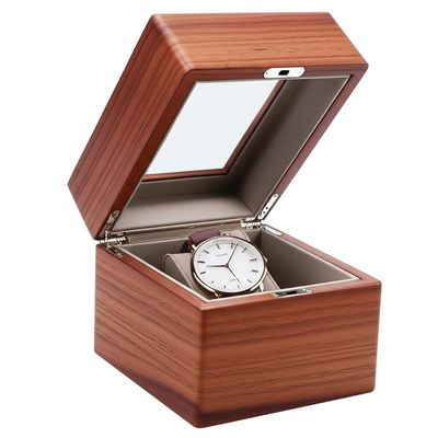 Craftsmanship & Texture: Made of premium wood with high-gloss finish, featuring warm luster and elegant design. The flip cover with hollowed-out top allows watch display without opening.