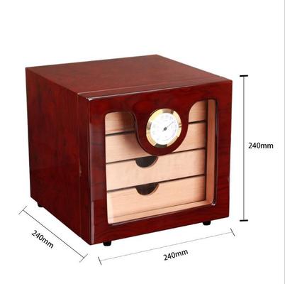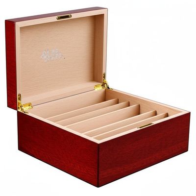 A luxurious wooden storage solution for cigar enthusiasts, crafted from high-quality Spanish cedar with lacquer finish. This elegant humidor box maintains optimal humidity levels to preserve your cigar collection in perfect condition.