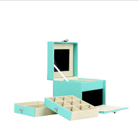 Premium custom jewelry organizer box with mirror, designed for convenient storage and display of necklaces, rings, and other jewelry items.