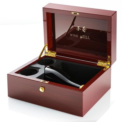 Luxury Natural Wood Wine Box With Piano Lacquer Finish Single Bottle Champagne Packaging Decorative Gift Box