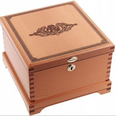 Custom Luxury Cedar Cigar Storage Box featuring high-quality construction with lock and lacquer technique printed design packaging.