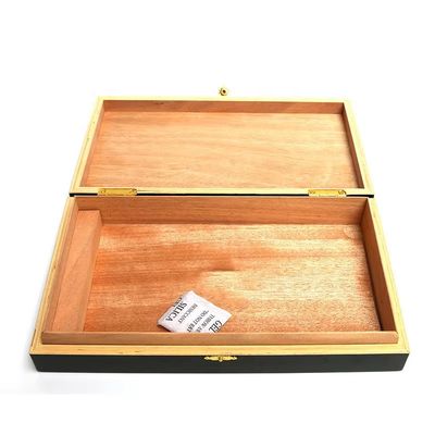 Custom Black Cedar Wood Cigar Box With Humidifier - 50 Cigar Capacity