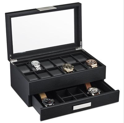 12-slot Watches Case With Drawer Large Black PU Leather Watch Case Window Packing Box