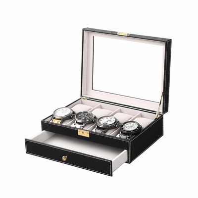 12 Slot Leather Watch Box Black With Drawer Large Pu Leather Watch Box