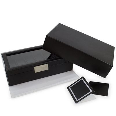 1.It is made of luxurious yet understated black leather, exuding sophistication while maintaining a low-key yet premium appearance. Whether placed in a study, closet or bedroom, it can instantly elevate the style of the space. The interior features 6 independent compartments, tailor-made for each wristwatch. The soft lining can tenderly protect the strap and case, preventing scratches and bumps, ensuring the watch remains in an exquisite condition at all times.