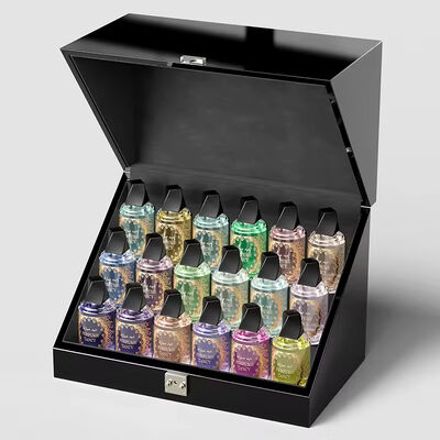 Exclusive black glossy lacquered flip-top wooden case tailored to the temperament of French high-end fragrances. The classic rectangular shape paired with a multi-slot partition design not only perfectly showcases the elegant texture of 50ml perfume bottles, but also enables combined display of fragrances in various specifications. It enhances the high-end visual recognition of the brand and meets the refined aesthetic requirements for perfume packaging in the French market.