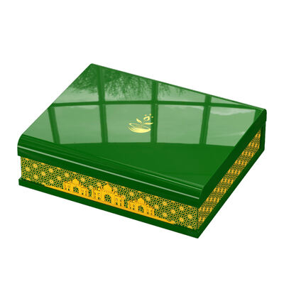3.New design green wooden perfume box with custom logo & high gloss lacquer. Suitable for 2 piece perfume bottles, France style luxury packaging. Factory direct wholesale.