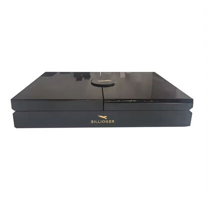 Luxury Glossy Piano Finish MDF Perfume Box Custom Logo Double-Opening Bronzing 30-100ml Square Gift Packaging