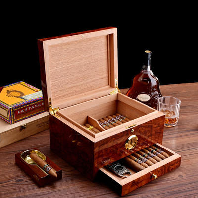 Hộp xì gà bằng gỗ nhạt cao với ngăn kéo - Hộp xì gà quà tặng lớn